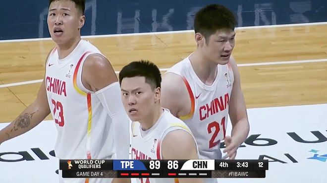 易邊再戰,中國台北隊延續火熱手感,陳盈駿和林庭謙外線接連命中三分,高柏鎧內線予取予求,一度將分差拉開至11分。盡管中國男籃三分手感保持出色,三節戰罷三分球23投11中,但內線防守漏洞明顯,未能有效限製對手得分。直到本節末段,朱俊龍連續命中三分止血,廖三寧一條龍上籃壓哨命中,才將分差縮小至6分,三節結束時,中國男籃以71-77落後,局勢岌岌可危。