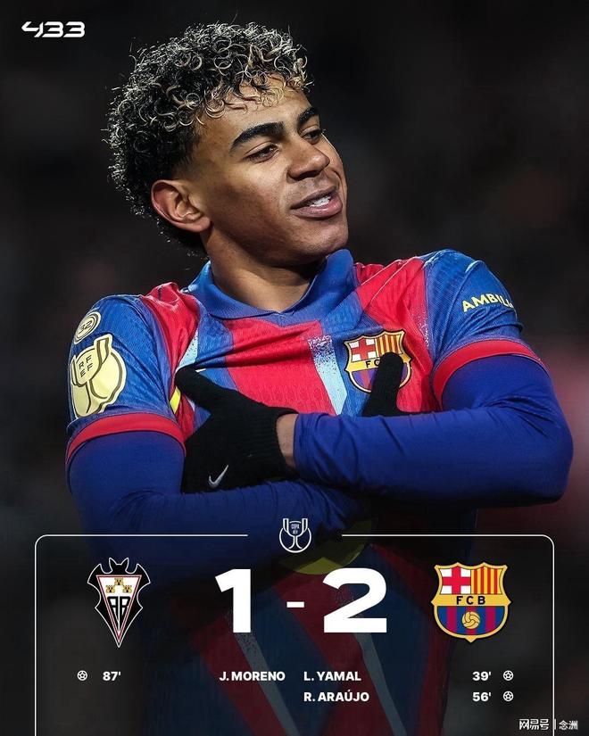 國王杯1/4決賽,巴薩客場2-1戰勝阿爾瓦塞特,晉級國王杯四強,取得各項賽事5連勝。亞馬爾連場破門,德容助攻,阿勞霍收獲回歸首球,拉什福德角球助攻,哈維-莫雷諾扳回一城。