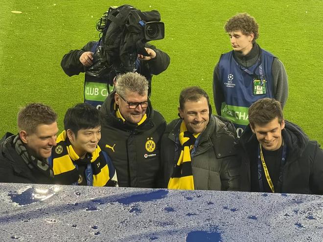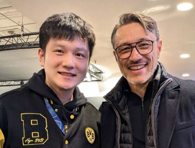 樊振東在社媒發布動態。他與德國名將波爾又一起觀看了足球比賽,並與多特蒙德的主帥合影。樊振東談笑風生,非常開心。